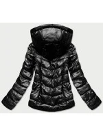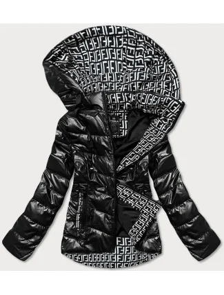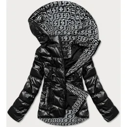 Černá dámská bunda s vzorovanou podšívkou (W718)
