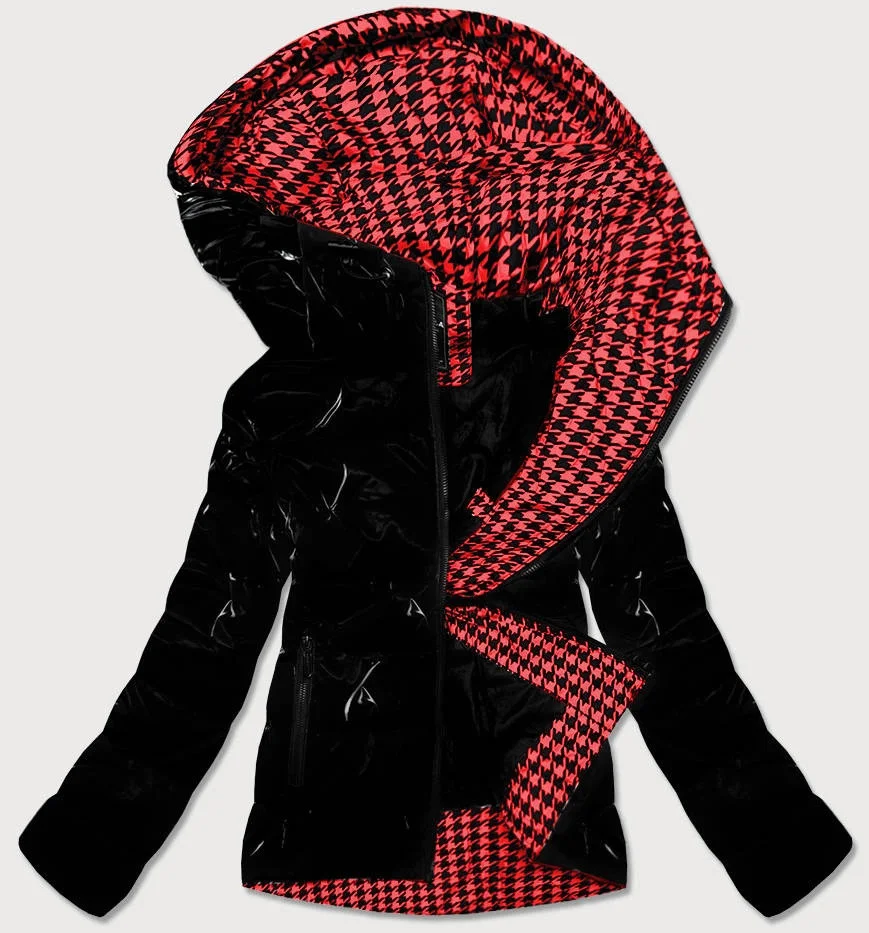 Černá dámská bunda se vzorovanou podšívkou (W707)