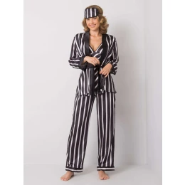 Černá dámská noční souprava s pruhovaným vzorem.