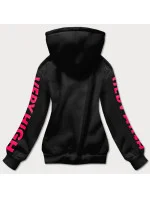 Mikina má volný střih, délku do pasu a obléká se přes hlavu. Uvnitř modelu je mechovitý kožíšek. Model lemují stahovací lemy.