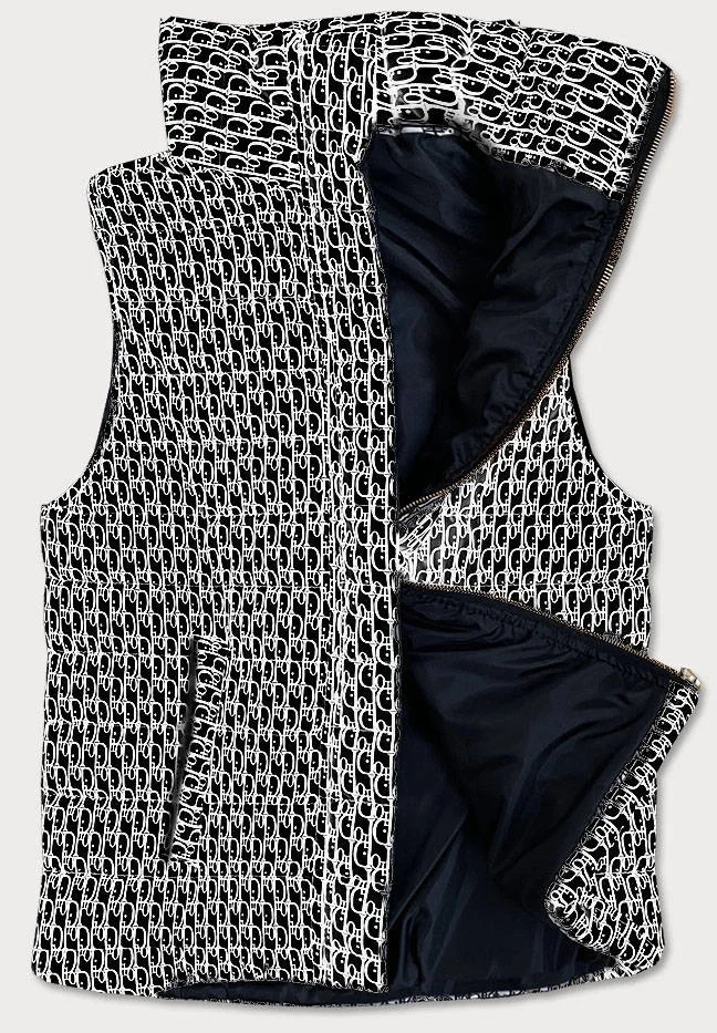 Vesta je zateplená syntetickou péřovou výplní. Model má stojáček, dvě kapsy a zapíná se zlatým zipem.