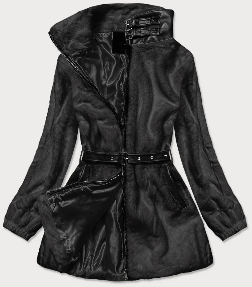 Černá kožešinová bunda se stojáčkem (GSQ2228)