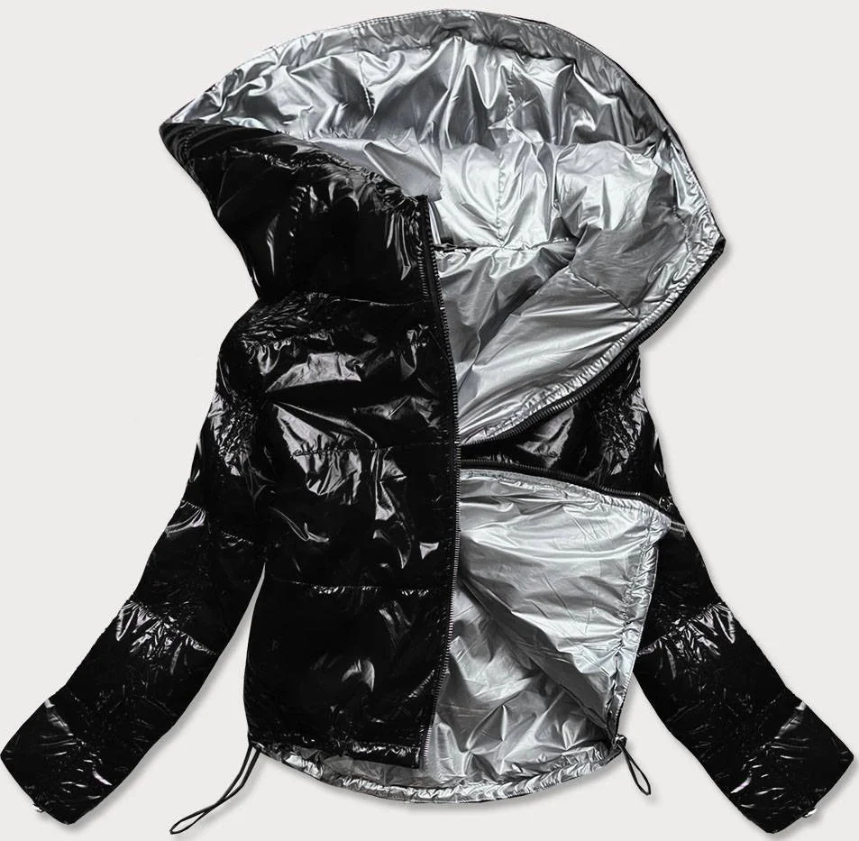 Černá lesklá prošívaná dámská bunda (B9560)