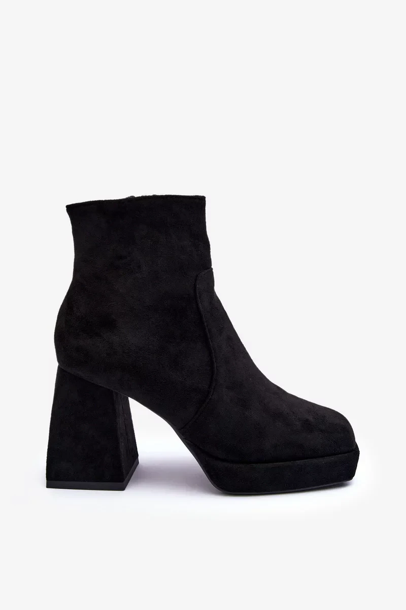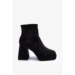Dámské kotníkové boty postavené na masivním vysokém bloku a platformě. Vyrobeno z ekologického semiše. Zapínání na zip na vnitřní straně svršku. Vnitřek je zateplen dekou na boty. Hranaté prsty. Podpatek je vyztužený. Při výběru velikosti se řiďte tabulkou velikostí.