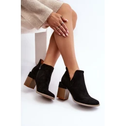 Dámské kotníkové boty vyrobené z na dotek příjemného eko semiše. Namontováno na masivním sloupku. Svršek po kotníky s výřezem a prolamovaným vzorem. Zapínání na zip. Zaoblené prsty. Pohodlí při nošení zajišťuje stélka z ekokůže. Ideální pro jarní styling! Při výběru velikosti se řiďte tabulkou velikostí.