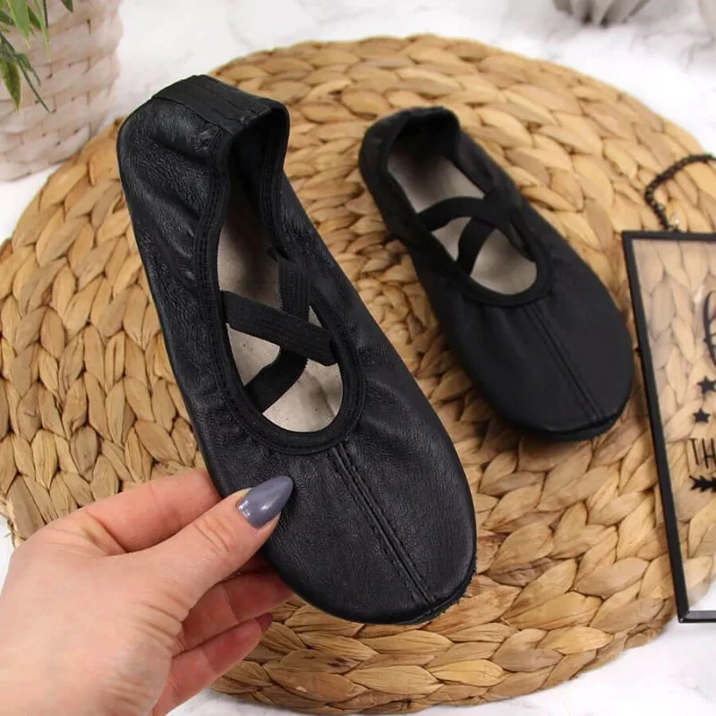 Taneční baletní boty Jr Nazo z černé kůže s gumovým páskem