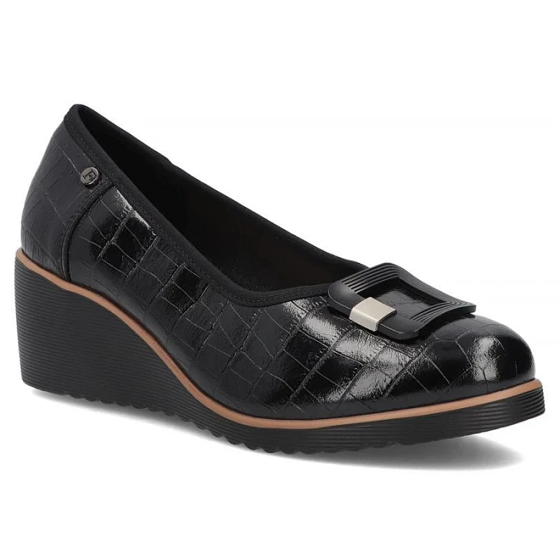 Boty posazené na pohodlném klínu, zdobené originálními ornamenty, se hodí téměř ke všem dámským stylizacím.