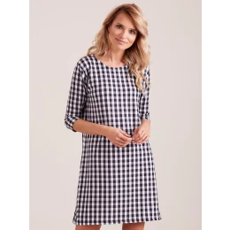 Černé šaty s kostkovaným vzorem.