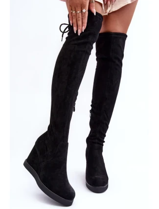 Dámské kozačky nad koleno na klíně ekologická semišová černá Tahlina
