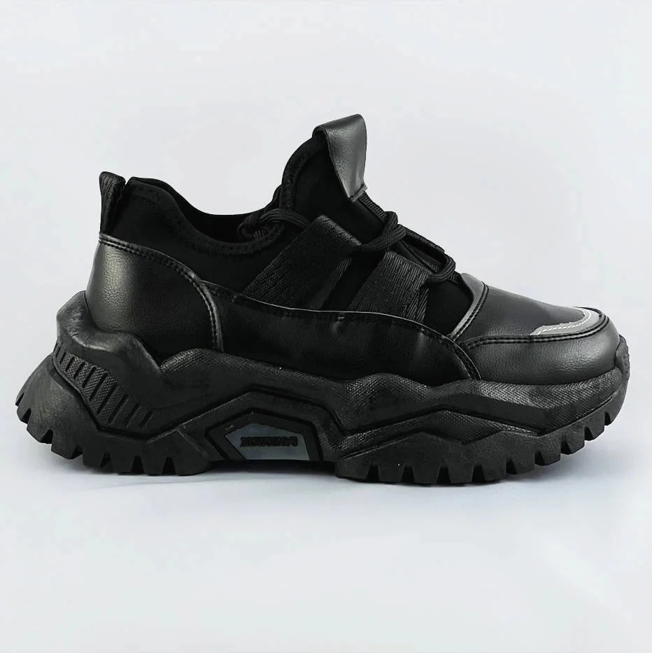 Černé šněrovací sneakersy na platformě (RA5)