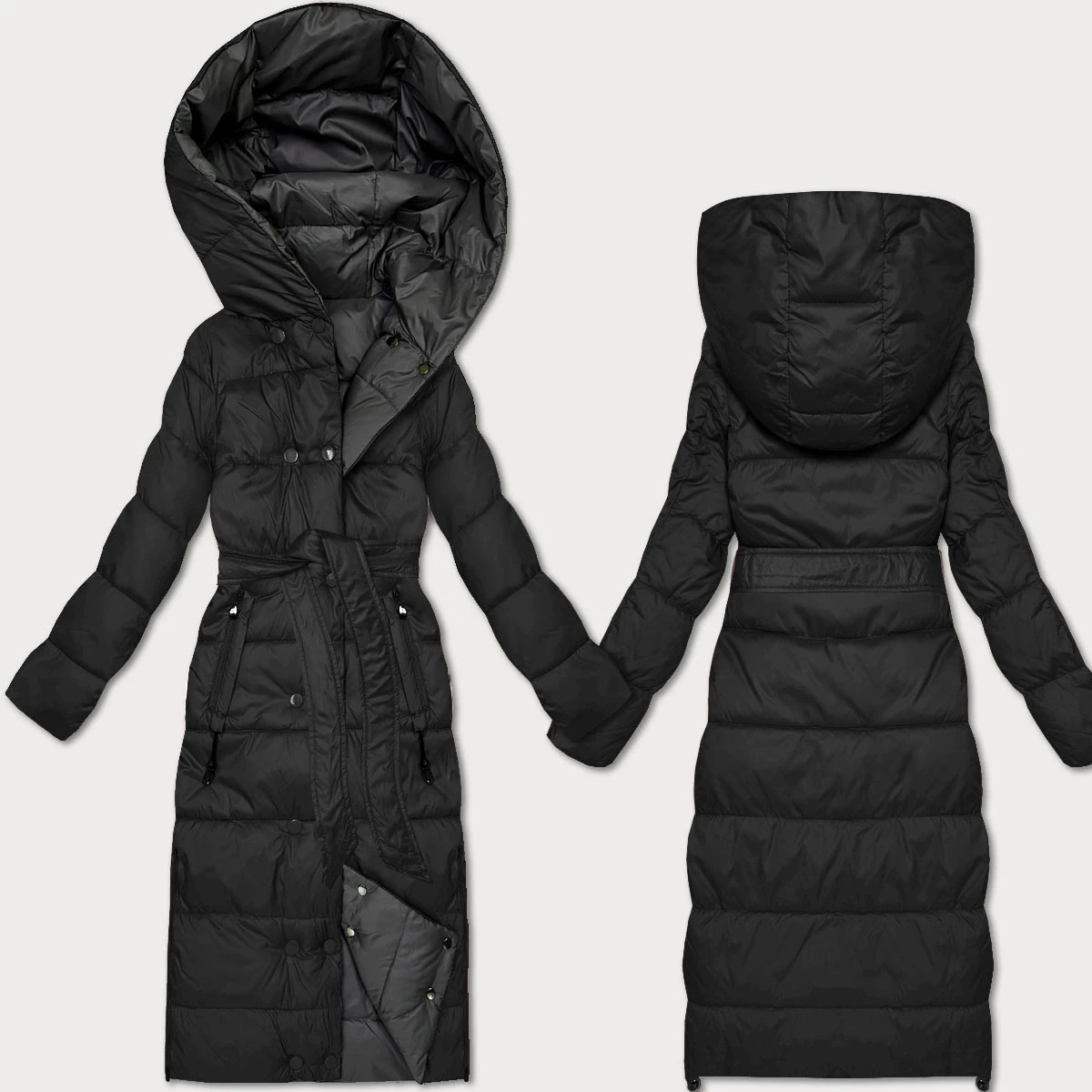 Bunda je prošívaná, je zateplená syntetickou péřovou výplní, má dvě kapsy a zapíná se dvousměrným zipem a panelem s patentkami. Model má kapuci, kterou není možné odepnout. Ve spodní části modelu jsou na bocích rozparky se zapínáním na zip. Bunda má délku ke kolenům.