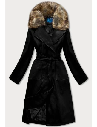 Černý dámský kabát s kožíškem (SASKIA)