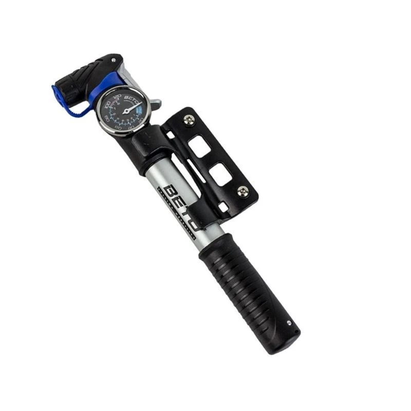 hliníková pumpa s MANOMETREM; dvoustupňová (čerpá oběma směry); měkký úchop kraton; automatický ventil Schrader / Presta