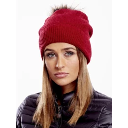 Čepice s chlupatou bambulí červená