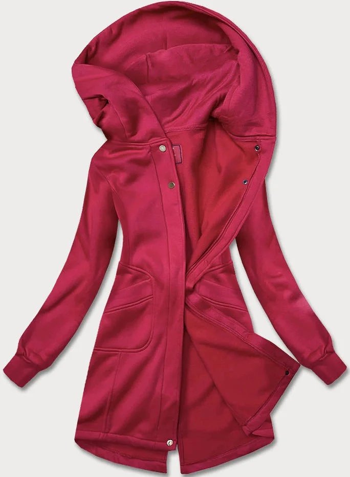 Mikina je vypasovaná, má dvě kapsy a zapíná se zipem. Uvnitř modelu je příjemný polar. Rukávy jsou olemované stahovacími lemy. Model má délku do poloviny stehen. Přední část mikiny je o něco kratší než zadní.