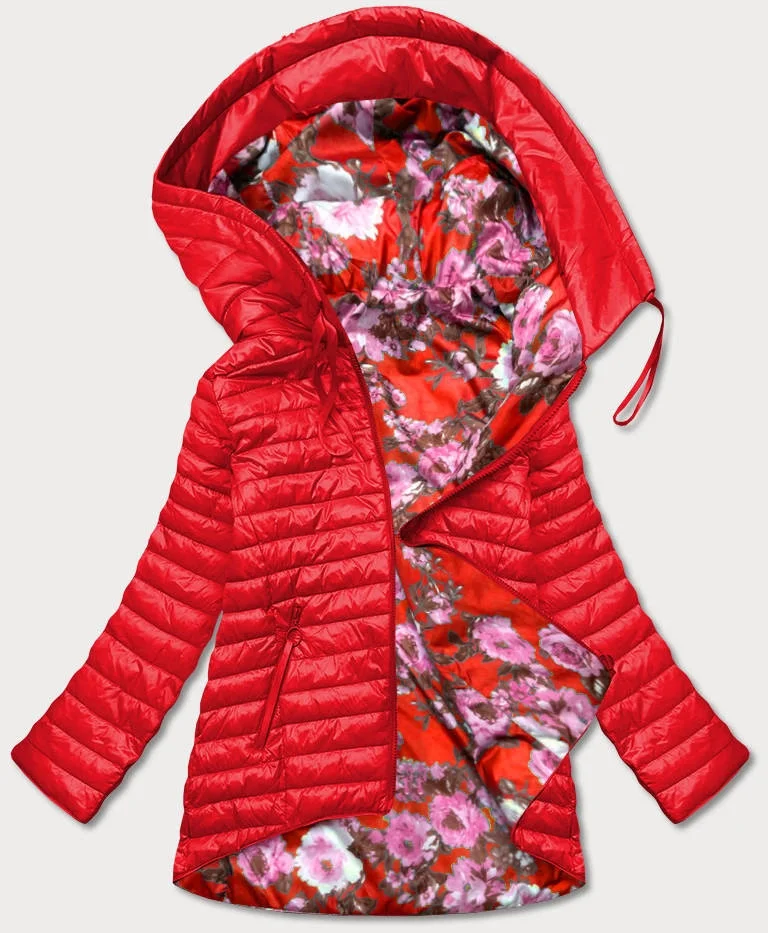 Červená oboustranná dámská květovaná bunda (PC-6105-16)