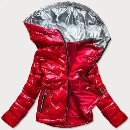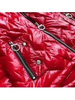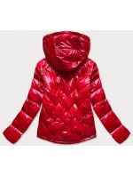 Červená prošívaná dámská bunda s kapucí (B9562)