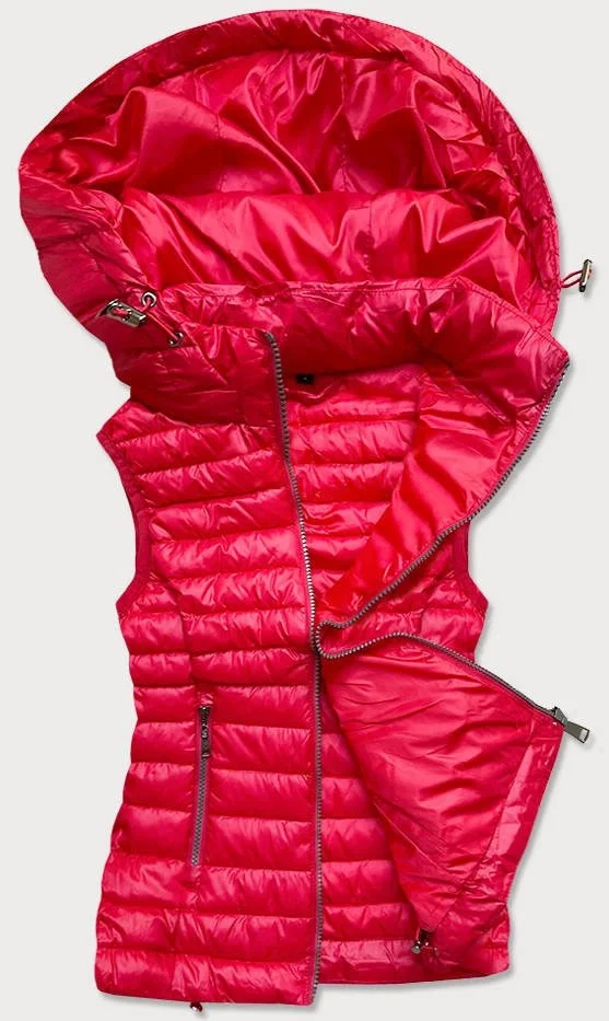 Vesta je lehce zateplená syntetickou péřovou výplní. Model má dvě kapsy a zapíná se zipem. V kapuci se táhnou stahující šňůrky.