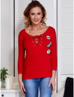 Červená šněrovací halenka se záplatami .