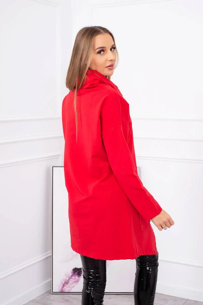Červená tunika nadměrné velikosti s obálkovou přední částí