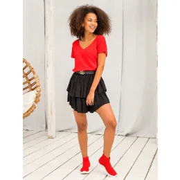 Bavlněné tričko s výstřihem do V červené.