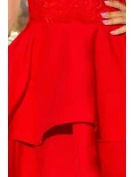 Červené dámské dvojitě rozšířené šaty s krajkovou vrchní částí model 6361545