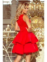Dámské exkluzivní šaty s dvojitou sukénkou a krajkovým dekoltem červené - Červená - Numoco