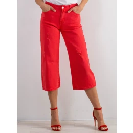 Roztřepené džíny v červené barvě.