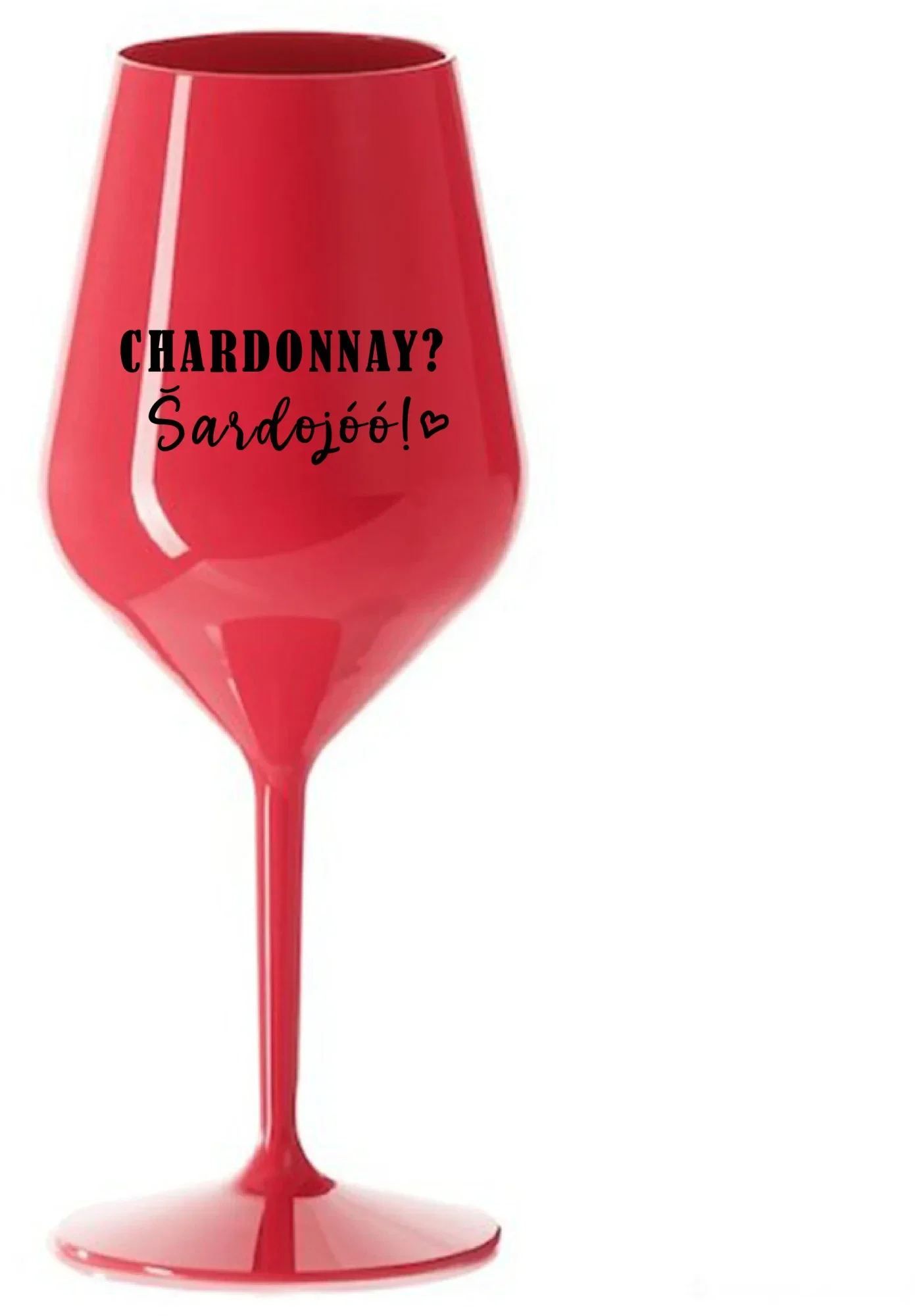 CHARDONNAY? ŠARDOJÓÓ! - červená nerozbitná sklenice na víno 470 ml
