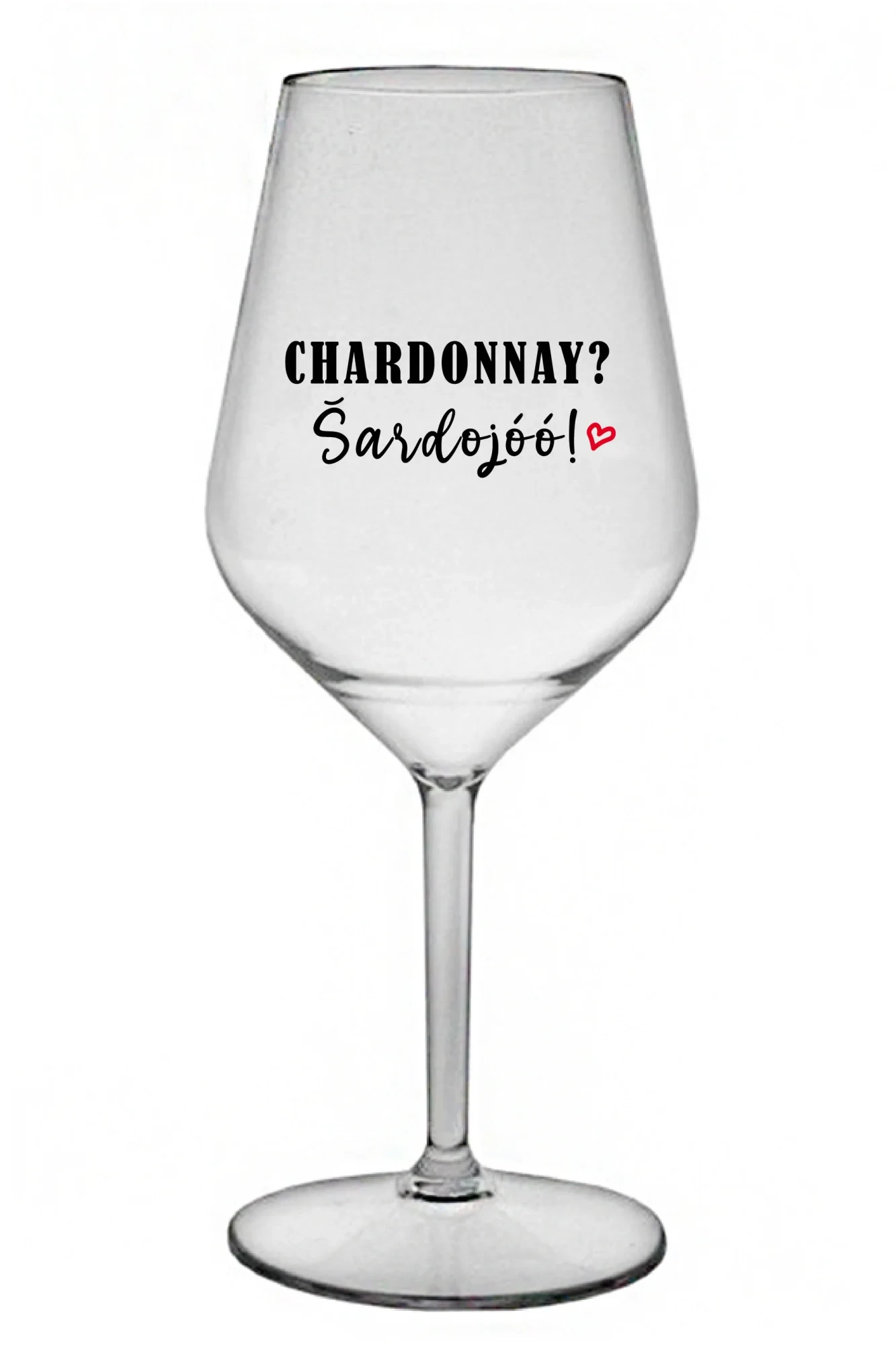 CHARDONNAY? ŠARDOJÓÓ! - čirá nerozbitná sklenice na víno 470 ml