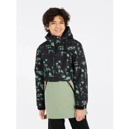Bunda se pyšní cool potiskem lesa a hor na PFC-free tkanině s vodoodpudivým povrchem 10K a prodyšností 10g, která umožňuje únik přebytečné vlhkosti.
