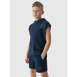 Chlapecká tepláková mikina bez rukávů s kapucí 4F - tmavě modrá