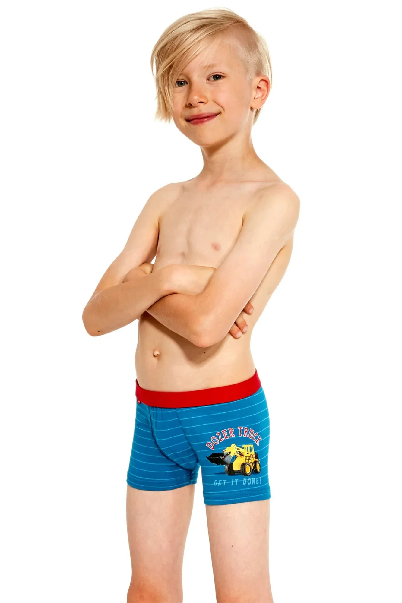 Chlapecké boxerky 701/76 Dozer truck 2 CORNETTE - oceán barva - z vysoce jakostní bavlny - s potiskem - má gumu sešitou plochými švy - okraje nohaviček netlačí do stehen - jemně obepínají tělo