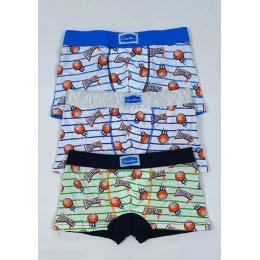 Dětské boxerky Gasolino. Chlapecké boxerky jsou z velmi příjemného a pružného materiálu, různě barevné, s potiskem basketbalového motivu. Horní obvod tvoří pružná širší guma potažená látkou pro komfortní nošení. Obvod nohaviček je volně přeložen, a proto se nezařezává. Do vnitřního dílu je zapracován bavlněný klínek. Barva Vám bude vybrána náhodně nebo můžete barvu poznačit do poznámky. Cena je za jeden kus boxerek.