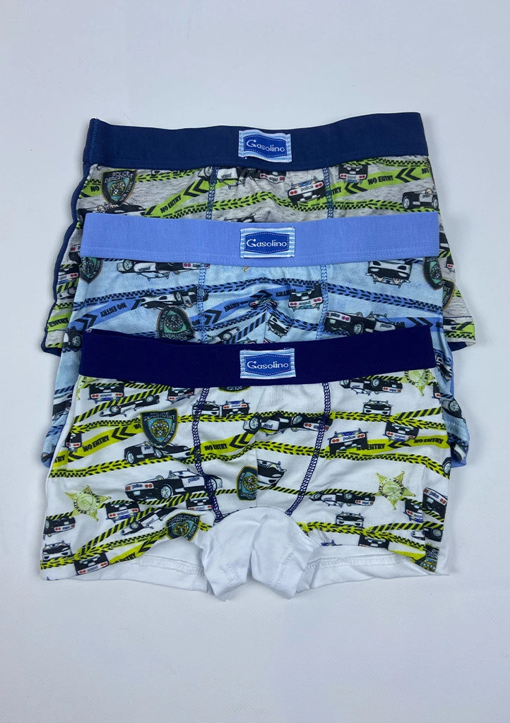 Dětské boxerky Gasolino. Velmi příjemný a pružný materiál chlapeckých boxerek, krásné a jemné barvy doladěné potiskem obrázků. Horní obvod tvoří pružná širší guma potažená látkou pro komfortní nošení. Obvod nohaviček je volně přeložen, a proto se nezařezává. Do vnitřního dílu je zapracován bavlněný klínek. Barva Vám bude vybrána náhodně nebo můžete barvu poznačit do poznámky. Cena je za jeden kus boxerek.