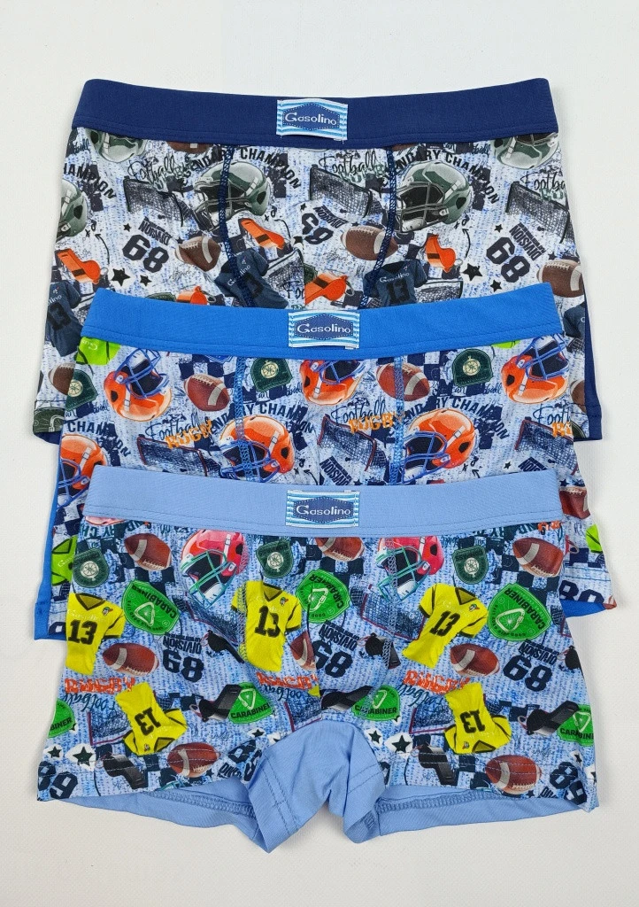 Dětské boxerky Gasolino. Velmi příjemný a pružný materiál chlapeckých boxerek, krásné a jemné barvy doladěné potiskem obrázků. Horní obvod tvoří pružná širší guma potažená látkou pro komfortní nošení. Obvod nohaviček je volně přeložen, a proto se nezařezává. Do vnitřního dílu je zapracován bavlněný klínek. Barva Vám bude vybrána náhodně nebo můžete barvu poznačit do poznámky. Cena je za jeden kus boxerek.