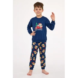 Piżama chłopięca Cornette BOY KIDS DR 593/172 TEDDY 2 to doskonały wybór na chłodne, świąteczne noce. Wykonana z miękkiej, wysokiej jakości 100% bawełny, gwarantuje wygodę i komfort snu. Koszulka z długim rękawem została ozdobiona uroczym, świątecznym nadrukiem z misiem, który z pewnością przypadnie do gustu najmłodszym. Do kompletu dołączone są długie, wzorzyste spodnie. Elastyczne ściągacze przy dekolcie, mankietach, dole koszulki i nogawkach dbają o idealne dopasowanie. Całość zapakowana w pudełko – świetny pomysł na prezent świąteczny dla chłopca.