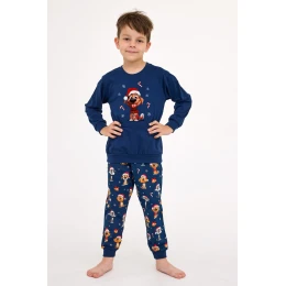 Świąteczna piżama chłopięca Cornette BOY KIDS DR 593/173 DOG to doskonały wybór na zimowe noce i przytulne wieczory w rodzinnym gronie. Wykonana w 100% z miękkiej i przyjemnej w dotyku bawełny, zapewnia maksymalny komfort i swobodę ruchów. Górę stanowi koszulka z długim rękawem i świątecznym nadrukiem z motywem psa, który zachwyci każdego malucha. Do kompletu długie, wzorzyste spodnie. Elastyczne ściągacze w mankietach, nogawkach i na dole koszulki gwarantują idealne dopasowanie. Całość zapakowana w estetyczne pudełko – świetna propozycja na prezent!