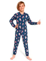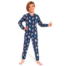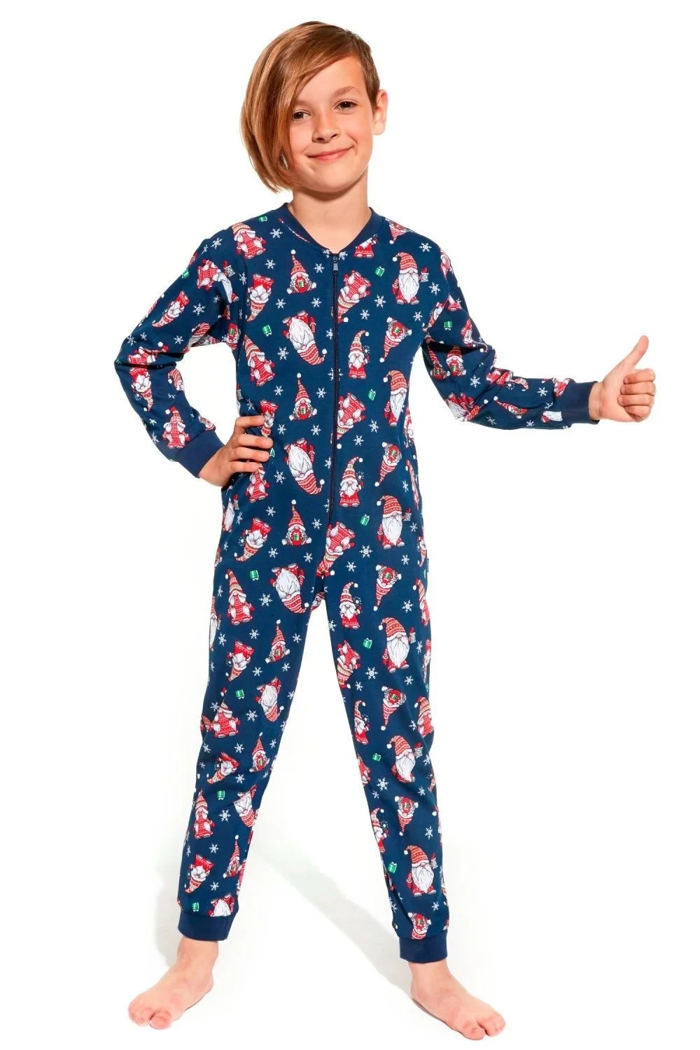 Chlapecké jednodílné pyžamo 185/138 Gnomes2 Cornette - vyrobené z vysoce kvalitní a měkké bavlny - tričko je tmavě modré barvy s dlouhými rukávy - zdobené vánočním potiskem - dlouhé kalhoty s barevným potiskem - zapínání na zip