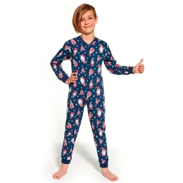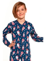 Chlapecké jednodílné pyžamo 185/138 Gnomes2 Cornette - vyrobené z vysoce kvalitní a měkké bavlny - tričko je tmavě modré barvy s dlouhými rukávy - zdobené vánočním potiskem - dlouhé kalhoty s barevným potiskem - zapínání na zip