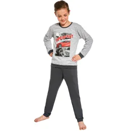 Chlapecké pyžamo 267/152 Superfast CORNETTE - vyrobené z vysoce kvalitní a měkké bavlny - šedé tričko s dlouhými rukávy - na přední straně ozdobené potiskem - pohodlné jednobarevné dlouhé kalhoty - pohodlná guma v pase