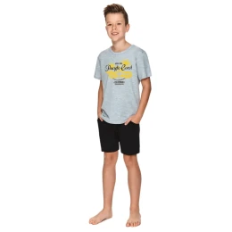 Chlapecké pyžamo 2749 Wadim TARO - vyrobené z vysoce kvalitní a měkké bavlny - tričko je šedé barvy s krátkými rukávy - s barevným potiskem - černé kraťasy - pohodlná guma v pase