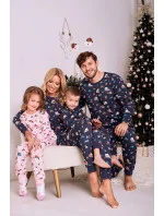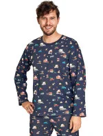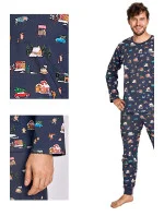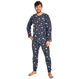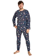 Chlapecké pyžamo 2839 Mikolaj Taro - vyrobené z vysoce kvalitní a měkké bavlny - tričko je tmavě modré barvy s dlouhými rukávy - zdobené barevným potiskem - dlouhé kalhoty s barevným potiskem - pohodlná guma v pase