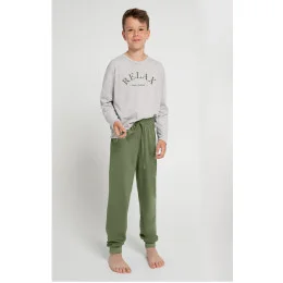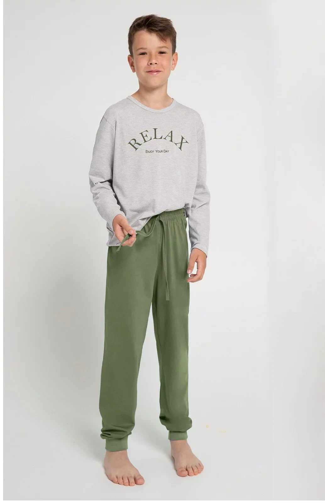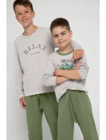 Chlapecké pyžamo 3090 SAMMY Světle béžová s tmavě zelenou - Taro