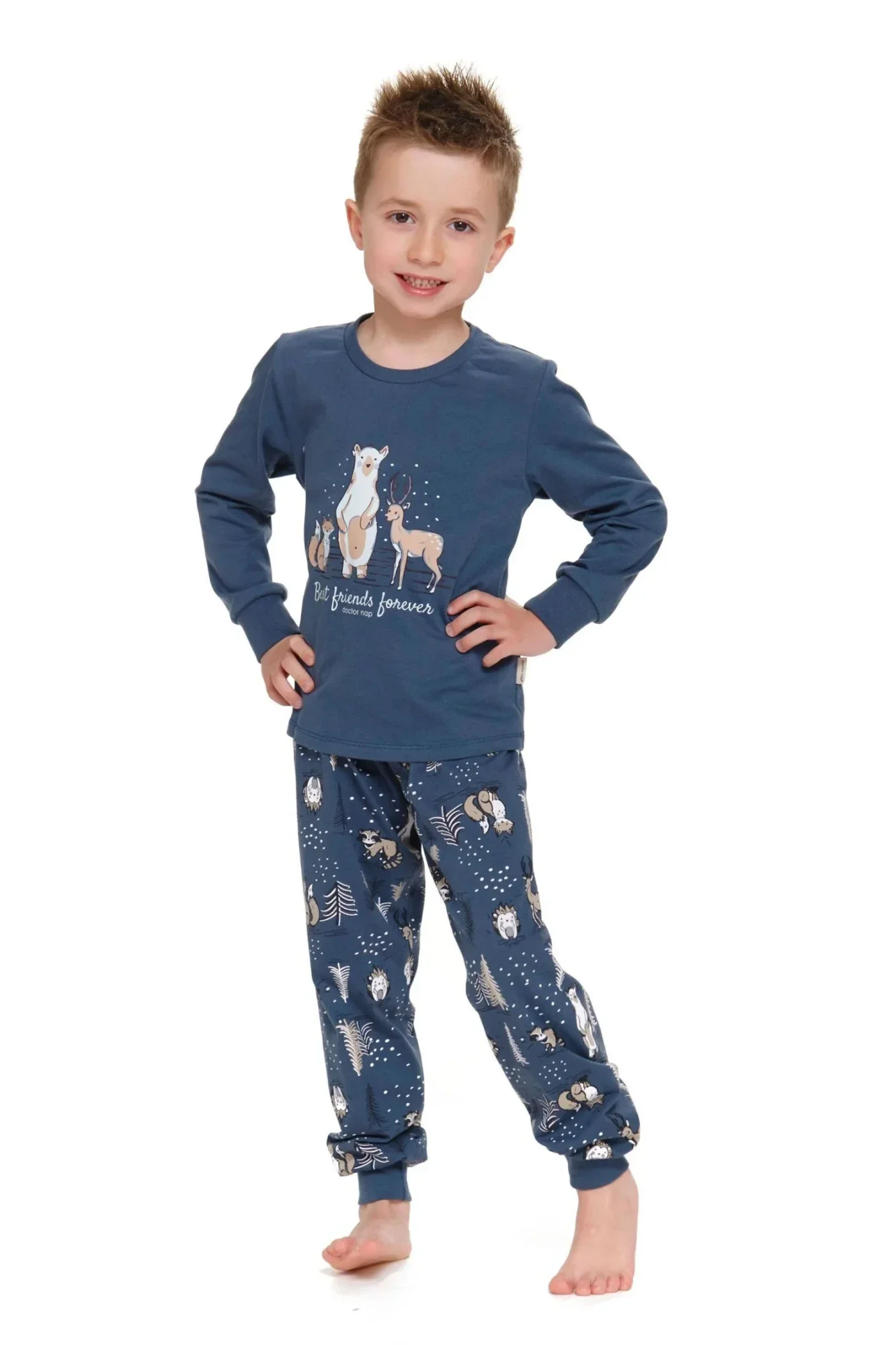 Chlapecké pyžamo 4324 plus Doctornap - světle modrá barva - vyrobené z velmi kvalitní a příjemné bavlny - modré tričko s dlouhými rukávy - na přední straně ozdobené potiskem - lemování manžet a výstřihu - dlouhé vzorované kalhoty s kapsami - certifikát OEKO-TEX Standard 100