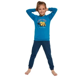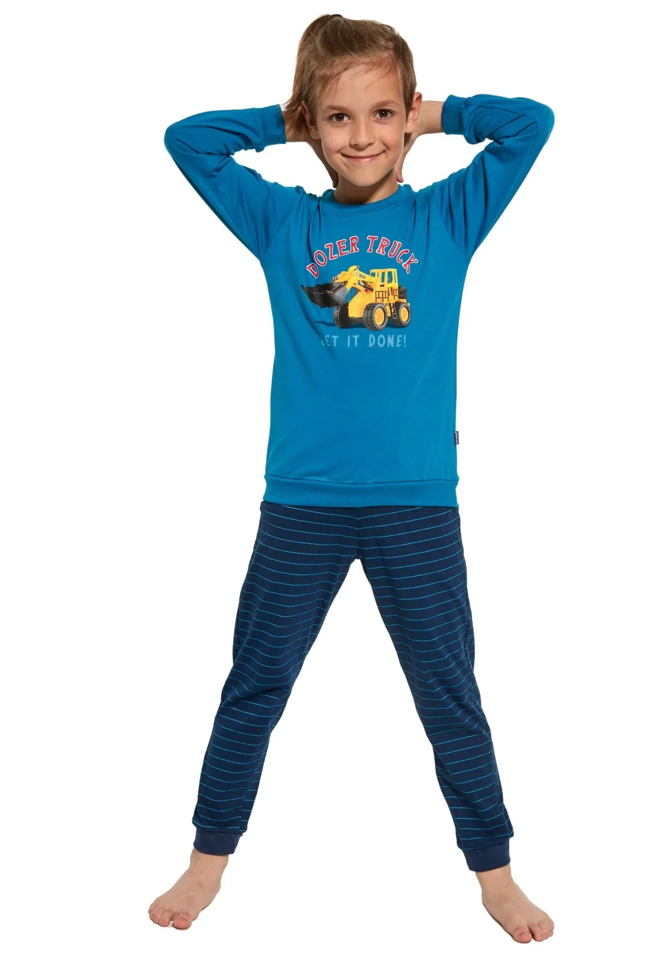 Chlapecké pyžamo 478/117 Dozer truck CORNETTE - z vysoce kvalitní a měkké bavlny - tričko je modré barvy s dlouhými rukávy - zdobené barevným potiskem - dlouhé vzorované kalhoty mají pohodlnou gumu v pase
