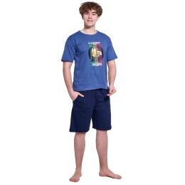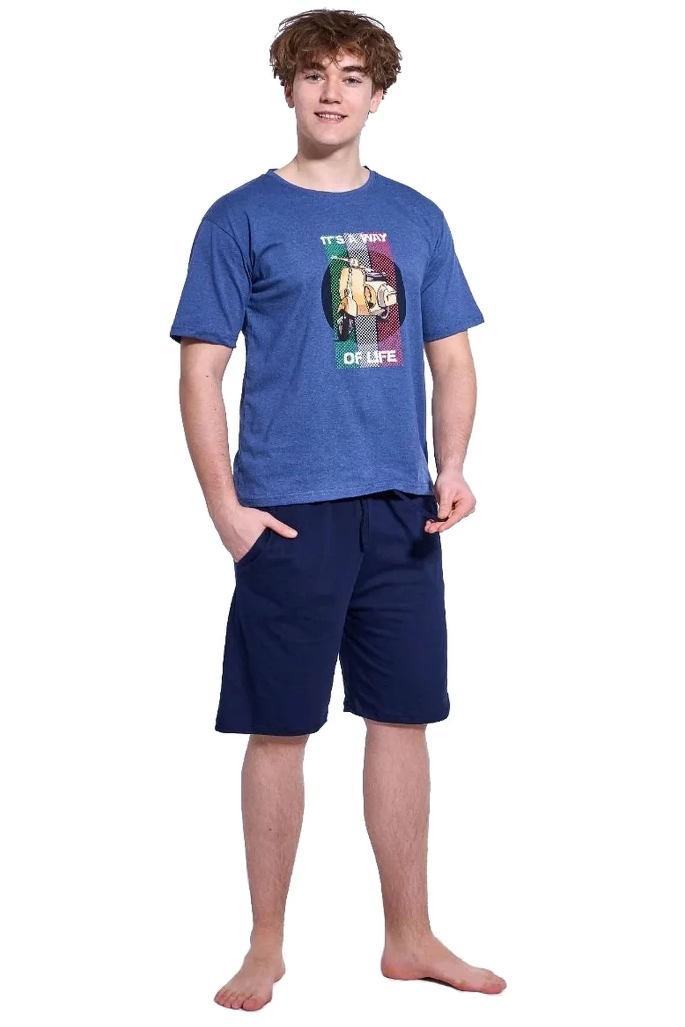 Chlapecké pyžamo 500/49 Scooter CORNETTE - z vysoce jakostní bavlny - džínové tričko s krátkými rukávy - zdobené potiskem na přední straně - tmavě modré kraťasy s kapsami - pyžamo je vhodné i na denní nošení