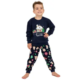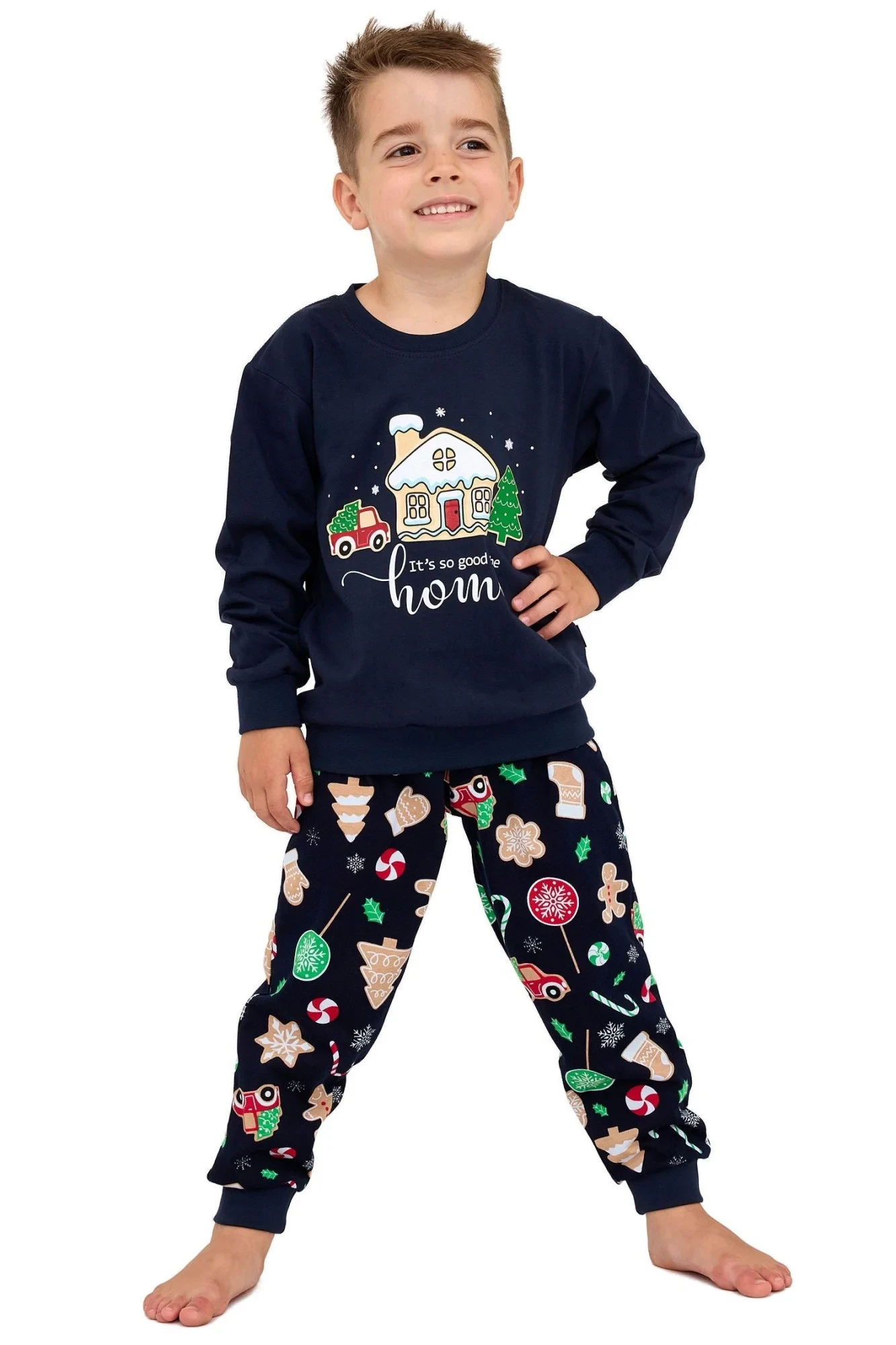 Chlapecké pyžamo 593/157 Home CORNETTE - z vysoce jakostní bavlny - tmavě modré tričko s dlouhými rukávy - zdobené potiskem na přední straně - dlouhé vzorované kalhoty - vánoční kolekce
