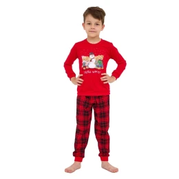 Chlapecké pyžamo 593/171 Winter CORNETTE - z vysoce jakostní bavlny - červené tričko s dlouhými rukávy - kulatý výstřih - přední strana ozdobená potiskem - dlouhé kárované nohavice zakončené stahovacím lemem