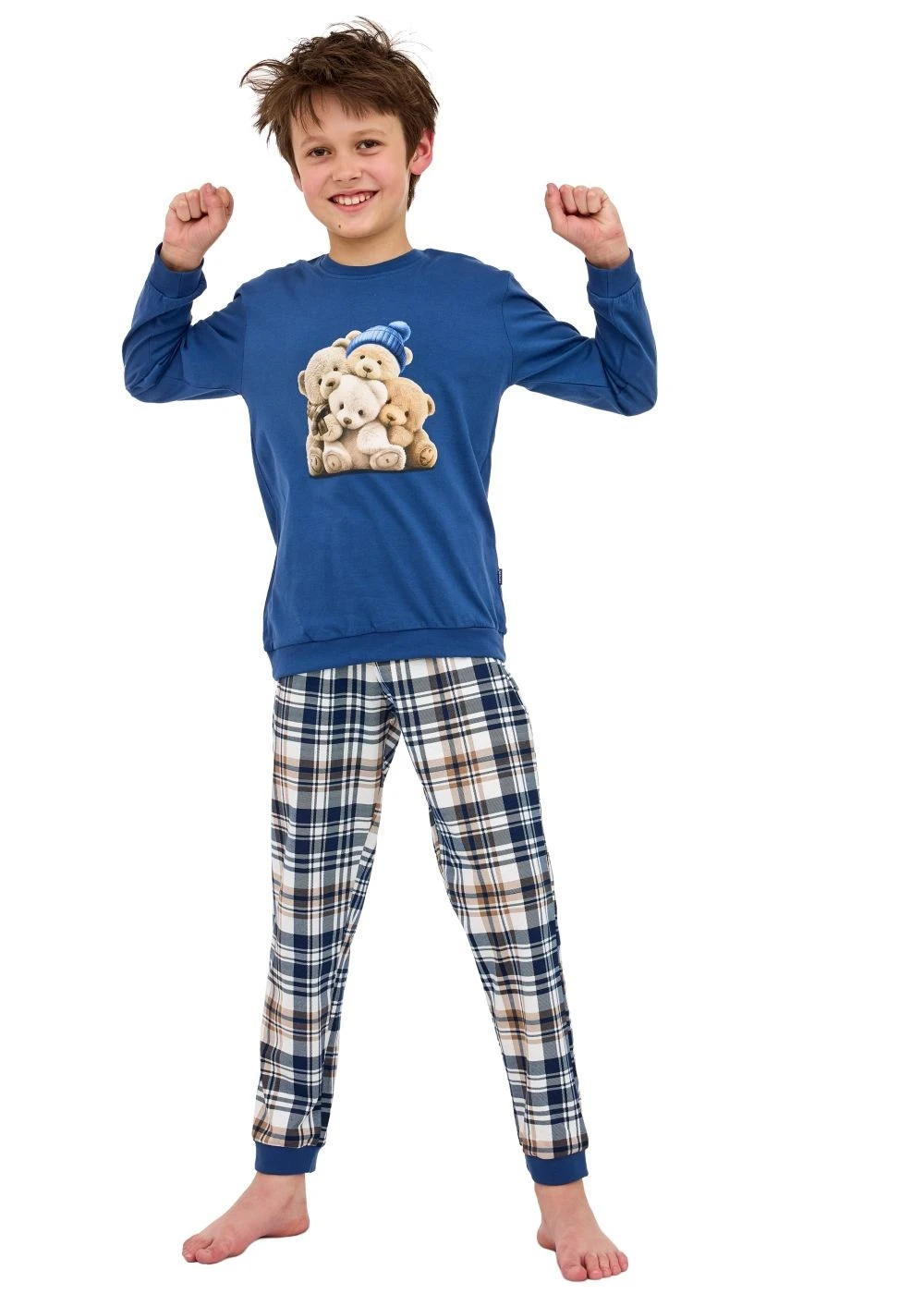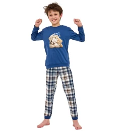 Chlapecké pyžamo 966/174 Bears CORNETTE - z vysoce jakostní bavlny - jeansové tričko s dlouhými rukávy - na přední straně zdobené potiskem - pohodlné vzorované dlouhé kalhoty - zakončené manžetami